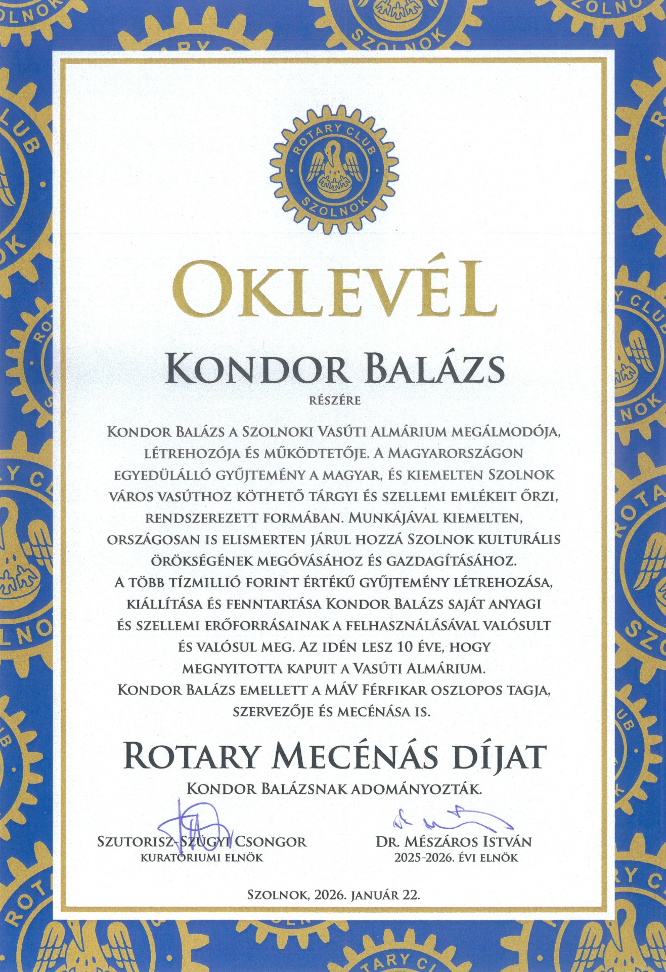 Rotary Mecénás Díj